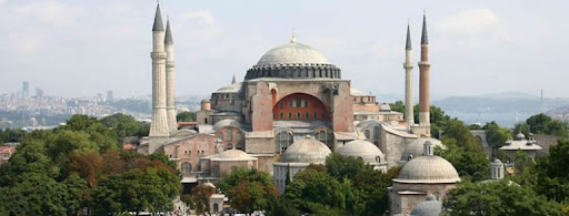 The Hagia Sophia is a beautiful, very large complex of buildings with a large central area with a rounded dome top surrounded by minarets and created in the Byzantine style. Hagia Sophia started as a Mosque, was transformed to a Greek Orthodox Church, and then a Latin Catholic church, and then finally changed back to a Mosque again over its 1500 year history. It is also a UNESCO World Heritage Site. The site is beautiful inside and out.